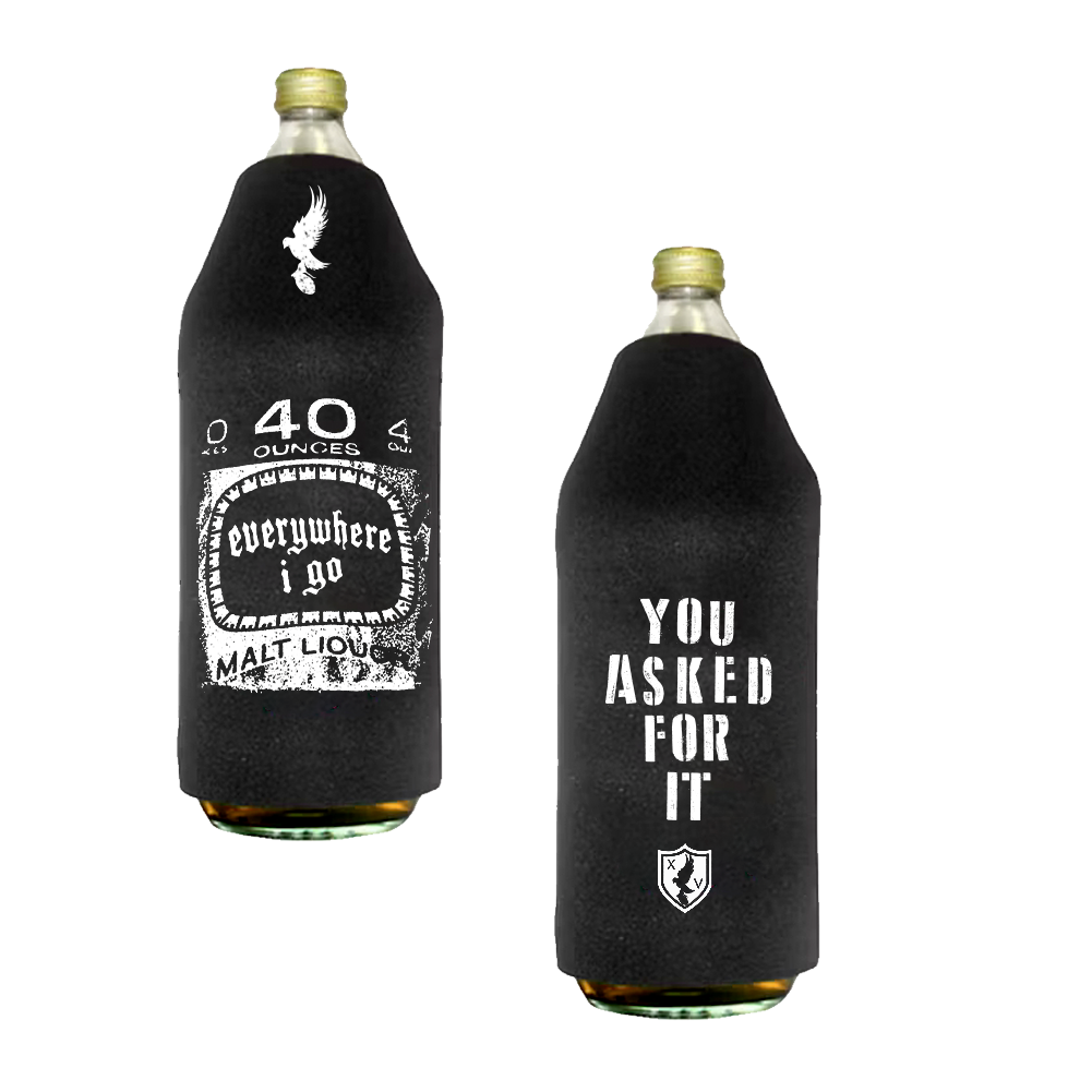 40oz koozie. Get the party started and keep the 40’s popping all night long.